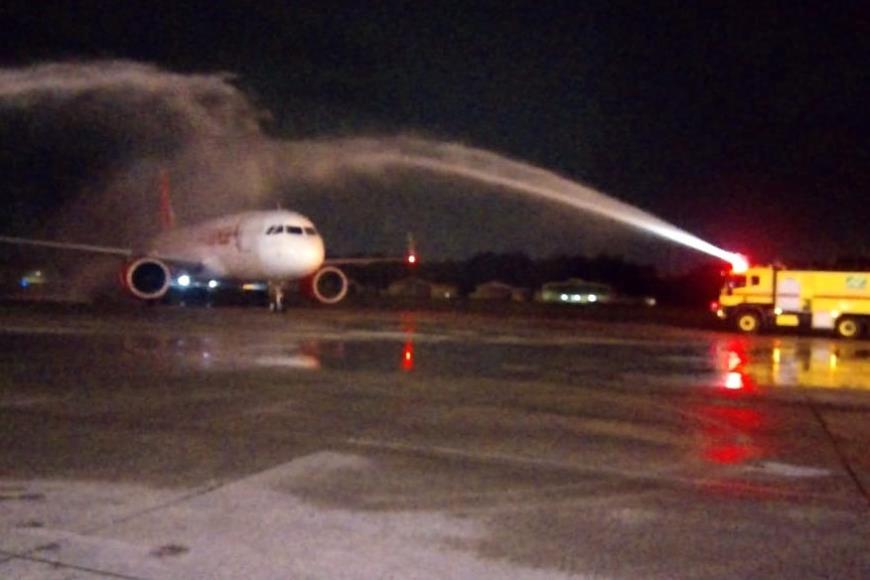 | Na chegada ao Pará, as aeronaves da Avianca Brasil passaram por batismo na pista do Aeroporto Internacional de Belém.(Foto: Ascom Setur) |