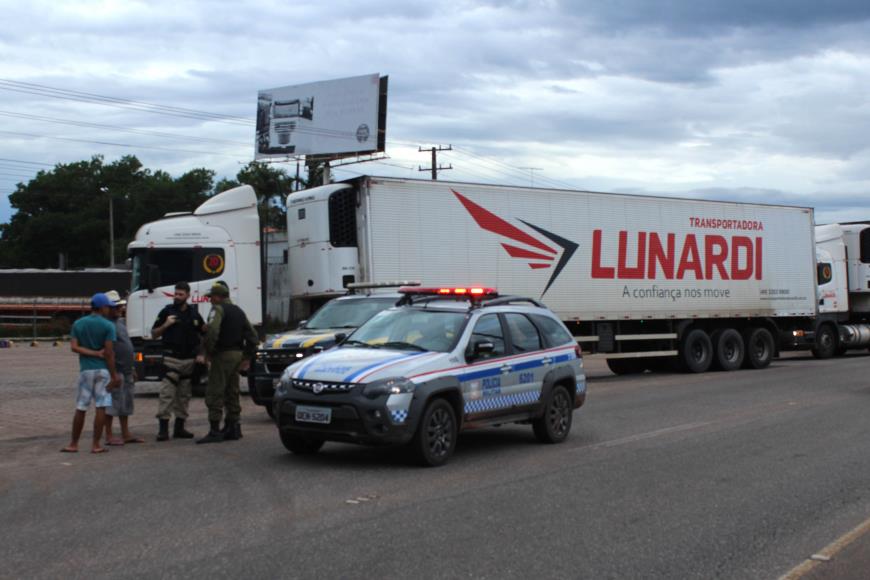 Obstrução - O apoio operacional da Polícia Militar na BR-316 começou logo cedo, por volta de 7 h, quando os caminhoneiros bloquearam a via nos dois sentidos, no KM-25 (trevo de Mosqueiro), em Benevides.