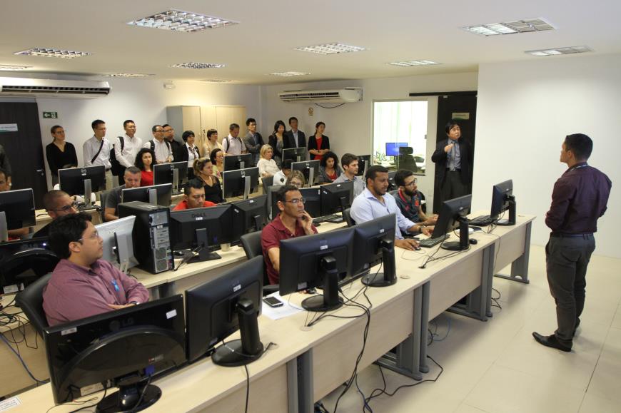 Após as exposições, os integrantes da comitiva foram ao Centro Integrado de Monitoramento Ambiental da Semas conhecer como funciona a ferramenta na prática.