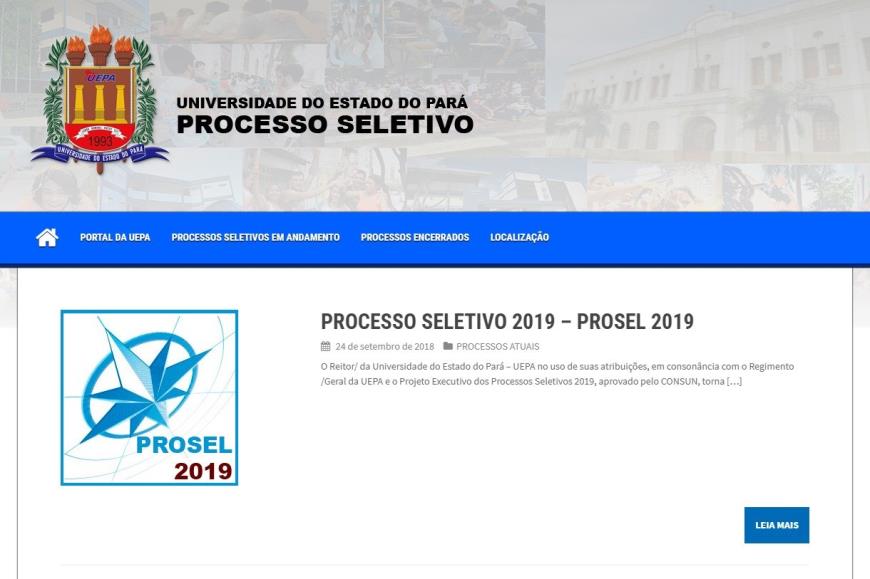 Encerra na quinta-feira (8) o prazo para as inscrições ao Processo Seletivo 2019 (Prosel) da Universidade do Estado do Pará (Uepa). Os interessados em participar do certame devem se inscrever exclusivamente pelo endereço eletrônico www2.uepa.br/prosel. Este ano, a instituição oferta 3.610 vagas para 30 cursos de graduação, distribuídos nos 16 municípios onde a Uepa está presente. Para concorrer, os candidatos deverão se inscrever no vestibular e fazer as provas do Exame Nacional do Ensino Médio (Enem).